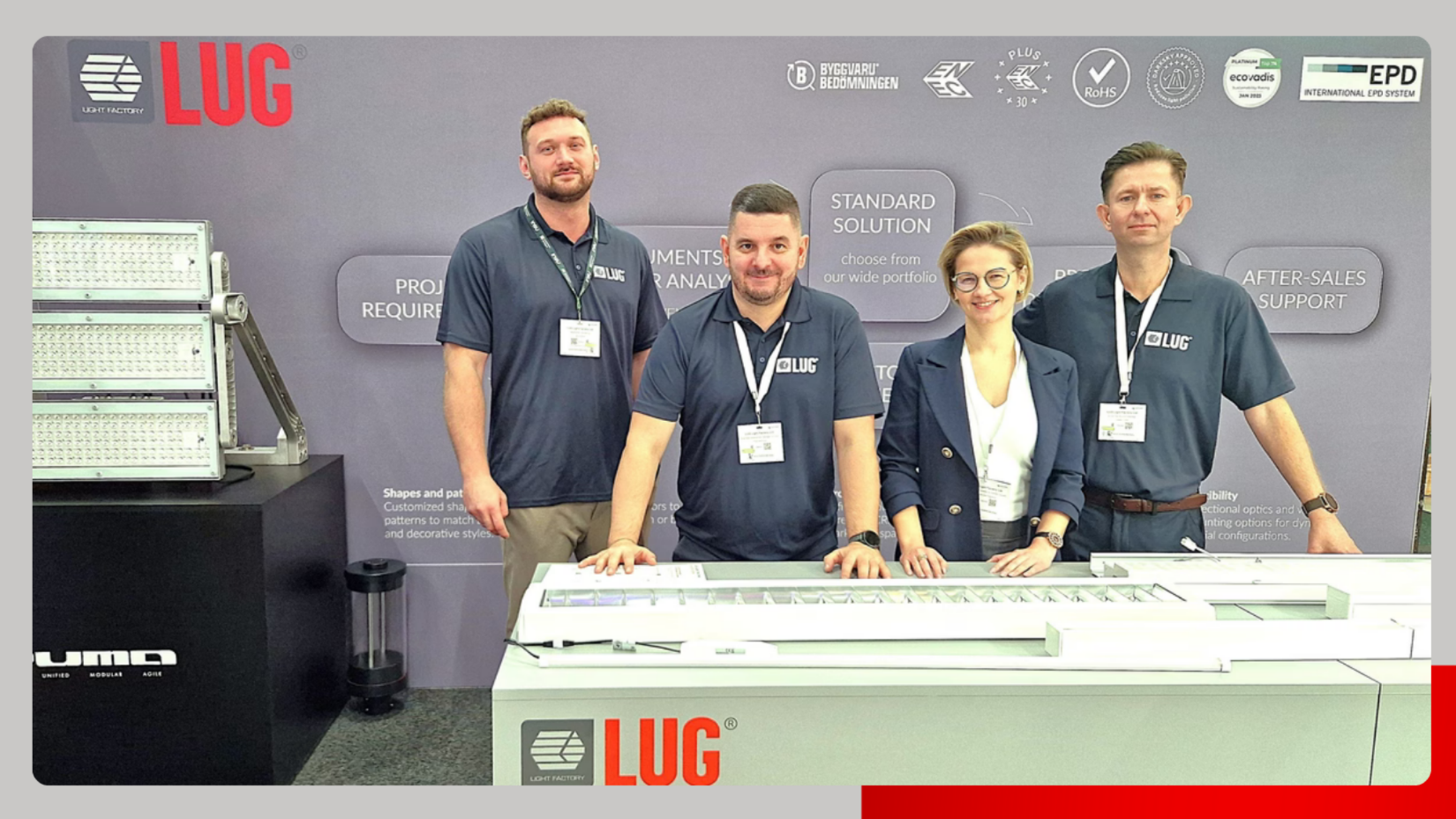 Podczas targów podkreślaliśmy kompletność rozwiązań oświetleniowych oraz usługowe podejście do współpracy. Czujemy się przede wszystkim partnerem projektowym, który wspiera klientów na każdym etapie inwestycji. Troszczymy się, prowadzimy konsultacje oświetleniowe, rozwiązania custom i bespoke. Huby kompetencyjne opracowują precyzyjne obliczenia i symulacje oświetleniowe, przygotowują kompletną dokumentację przetargową i techniczną.