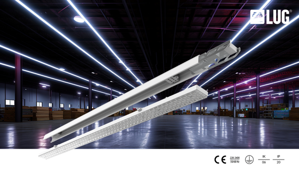 LUGTRACK EVO 2.0 – niezawodna oprawa do szybkiego montażu; konstrukcja umożliwia szybkie i łatwe łączenie w długie ciągi świetlne; wymienne moduły oświetleniowe. Rozwiązanie do hal magazynowych (wydajność do 170 lm/W). Szczegółowa specyfikacja